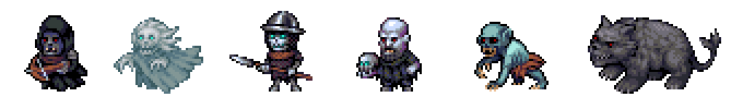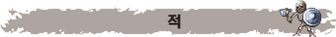 각각의 적들은 고유의 특성들과 각기 다른 능력들을 지녔습니다. 뱀파이어들은 멀리서부터 약화된 캐릭터를 탐지할 수 있고 쏟아진 핏자국으로부터 광폭화를 이끌어냅니다. 유령들은 벽을 통과해서 올 수 있으며 물리 공격에 면역입니다. 스켈레톤들의 뼈는 죽은 직후 시끄럽게 흔들려 주변의 적들에게 경보를 울립니다.